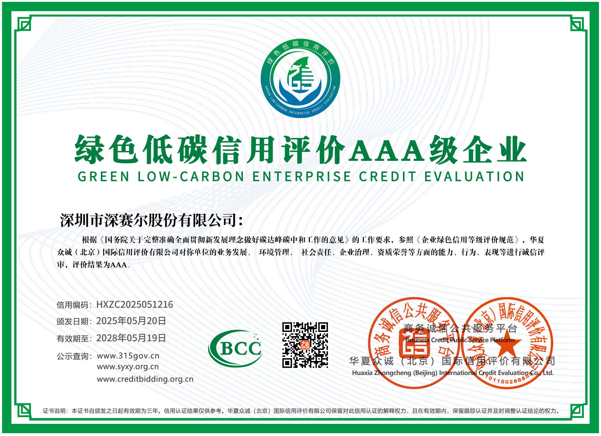 綠色低碳信用評價3A級企業